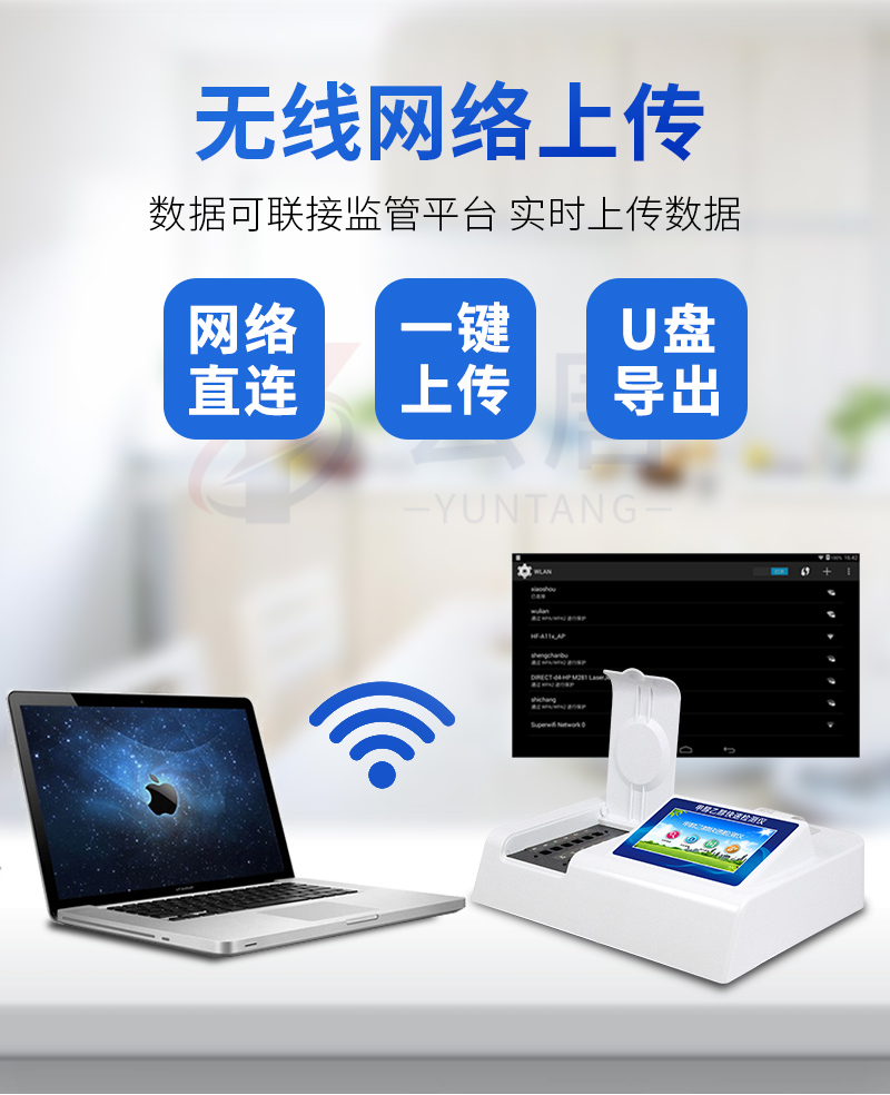 儀器采用臺(tái)式一體化系統(tǒng)檢測技術(shù),將分光光度模塊、新型農(nóng)殘檢測模塊、數(shù)字化管理模塊、無線通訊模塊高度集成于一體,支持檢測200種食品安全檢測項(xiàng)目,同時(shí)預(yù)留升級(jí)檢測方法。儀器檢測模塊標(biāo)準(zhǔn)化、智能化,可隨意自由組合。檢測箱體內(nèi)置多個(gè)標(biāo)準(zhǔn)檢測單元,檢測模塊可以調(diào)整配置。儀器采用全新安卓智能系統(tǒng),主控芯片采用 ARM Cortex-A7,RK3288/4核處理器,10.1寸高清液晶觸摸豎屏,更加**的UI交互界面,運(yùn)轉(zhuǎn)快捷;儀器配備無線通信模塊: 4G(APN)通訊模塊、Wifi模塊,藍(lán)牙傳輸,同時(shí)具有雙USB接口以及RJ45接口能以多種方式實(shí)現(xiàn)數(shù)據(jù)保存和數(shù)據(jù)傳輸功能。創(chuàng)新檢測模式:★檢測通道:≥12通道;采用精密旋轉(zhuǎn)比色池設(shè)計(jì),使用同芯片同光源校準(zhǔn)精度,解決不同光源之間的誤差值。1-12通道間誤差0.1%。(***:**202022821055.2)★儀器具有自動(dòng)識(shí)別比色皿檢測功能,即:將樣品比色皿放入儀器后,點(diǎn)擊樣品檢測,儀器自動(dòng)識(shí)別比色皿進(jìn)行通道檢測。進(jìn)口高精光源:高精度進(jìn)口四波長冷光源,通道配置 410、520、590、630nm 波長光源,一個(gè)光源芯片驅(qū)動(dòng)一個(gè)光源,誤差極小,每臺(tái)設(shè)備單獨(dú)**校準(zhǔn)光源,**比對,同時(shí)參照四種不同波段光源全方位覆蓋市面上99%的農(nóng)殘食品項(xiàng)目檢測。智能化操作系統(tǒng):便捷操作系統(tǒng):設(shè)備檢測時(shí)可在同一檢測界面自動(dòng)對應(yīng)相關(guān)檢測通道一次性選擇1-12個(gè)樣品名稱,無須退出界面,節(jié)省操作時(shí)間。數(shù)據(jù)集成系統(tǒng):設(shè)備首頁自動(dòng)統(tǒng)計(jì)檢測數(shù)據(jù)包含:周檢測數(shù)據(jù)、月檢測數(shù)據(jù),全部檢測總數(shù)量,均包含檢測總數(shù),合格數(shù),不合格數(shù),以及相關(guān)柱形分析圖,對各項(xiàng)檢測數(shù)據(jù)清晰掌握,無需電腦查詢,更加快捷直觀。項(xiàng)目預(yù)設(shè)系統(tǒng):支持添加單個(gè)及多個(gè)相同或不相同的任務(wù)預(yù)設(shè),一鍵快速調(diào)取,每一個(gè)任務(wù)分別可以設(shè)置不同的樣品、批次、編號(hào)、來源、備注、抽樣信息、檢測信息、受檢信息、復(fù)核信息等更多信息。無縫鏈接平臺(tái)和APP實(shí)時(shí)查看下發(fā)任務(wù)。數(shù)據(jù)監(jiān)管系統(tǒng):同步對接監(jiān)管平臺(tái),數(shù)據(jù)可局域網(wǎng)和互聯(lián)網(wǎng)數(shù)據(jù)上傳,檢測結(jié)果可選擇直接傳至食品安全監(jiān)管平臺(tái)。集成OSS輸出存儲(chǔ)服務(wù)、區(qū)分設(shè)備定向管理應(yīng)用,進(jìn)行區(qū)域食品安全監(jiān)管及大數(shù)據(jù)分析處理與數(shù)據(jù)統(tǒng)計(jì),檢測區(qū)域食品安全長短期動(dòng)態(tài),達(dá)到食品安全問題預(yù)估、預(yù)警。自定義打印系統(tǒng):內(nèi)置全新打印系統(tǒng),新創(chuàng)自定義打印方式,可按需靈活設(shè)置開啟或關(guān)閉:產(chǎn)品合格證(國家農(nóng)業(yè)部標(biāo)準(zhǔn)要求),二維碼,抽樣信息、檢測信息,受檢信息、復(fù)核信息、抽樣日期、檢測日期等信息的打印。系統(tǒng)遠(yuǎn)程更新功能:可定向分客戶分儀器更新系統(tǒng),按照不同客戶后期實(shí)際需求添加項(xiàng)目,無需機(jī)器返廠,即可遠(yuǎn)程實(shí)時(shí)升級(jí)全新系統(tǒng),節(jié)省時(shí)間成本及避免運(yùn)輸造成設(shè)備損壞。儀器主機(jī)采用一體化防水、抗壓、防撞擊、防腐蝕箱體設(shè)計(jì),同時(shí)配備交直流供電,可連接車載電源,可選配大容量充電鋰電池,滿足現(xiàn)場野外檢測需求。安全證書,放心保障:儀器具有中國計(jì)量科學(xué)研究院校準(zhǔn)證書,權(quán)威認(rèn)證。