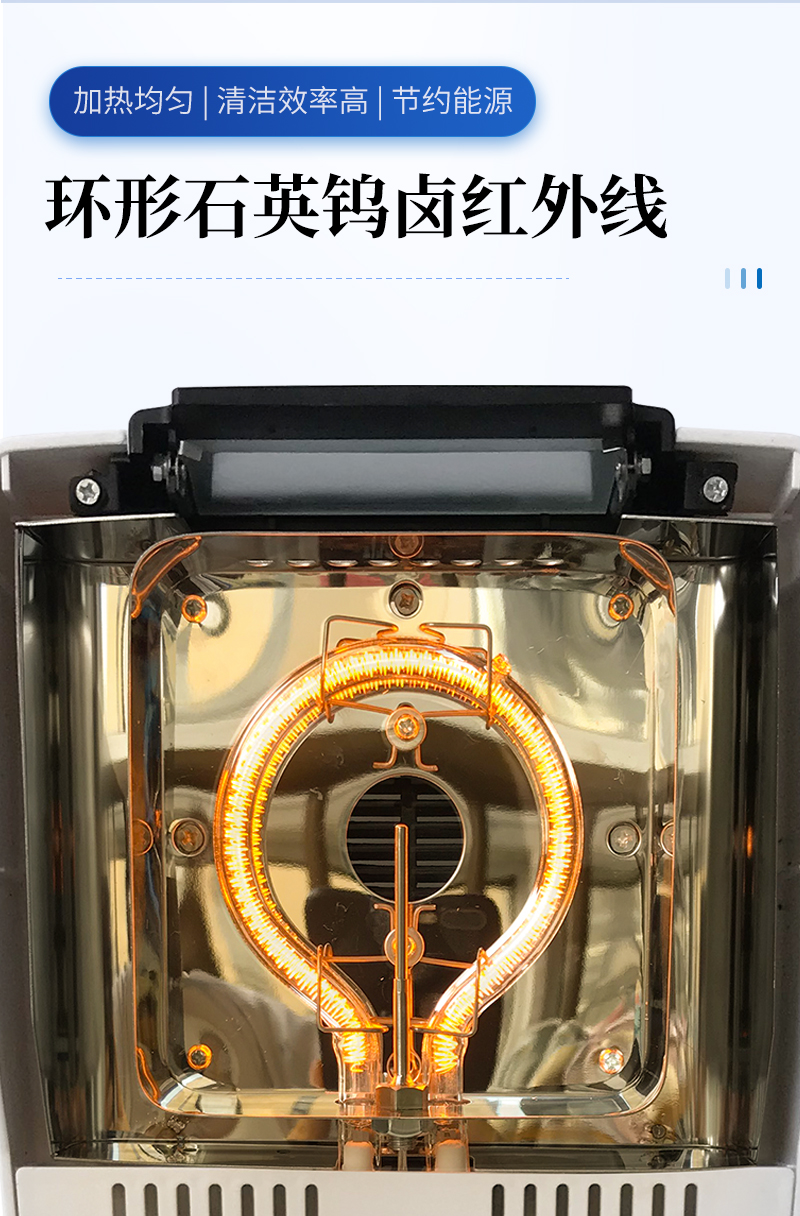 環(huán)狀的鹵素?zé)舸_保樣品得到均勻加熱,操作簡便、測量準(zhǔn)確。水分測定儀在測量樣品重量的同時,儀器采用環(huán)形管鹵素加熱方式,快速干燥樣品,在干燥過程中,水分儀持續(xù)測量并即時顯示樣品丟失的水分含量%,干燥程序完成后,*終測定的水分含量值被鎖定顯示。與國際烘箱加熱法相比,鹵素加熱可以在高溫下將樣品均勻地快速干燥,樣品表面不易受損,其檢測結(jié)果與國標(biāo)烘箱法具有良好的一致性,具有可替代性,且檢測效率遠(yuǎn)遠(yuǎn)高于烘箱法。智能化操作,一般樣品只需幾分鐘即可完成測定。該儀器操作簡單,測試準(zhǔn)確,顯示部分采用液晶顯示屏-使屏幕更加清晰明亮,示值清晰可見,分別可顯示水分值,樣品初值,終值,測定時間,溫度初值,*終值等數(shù)據(jù),并具有與計(jì)算機(jī),打印機(jī)連接功能、符合GLP規(guī)范的打印數(shù)據(jù)輸出。