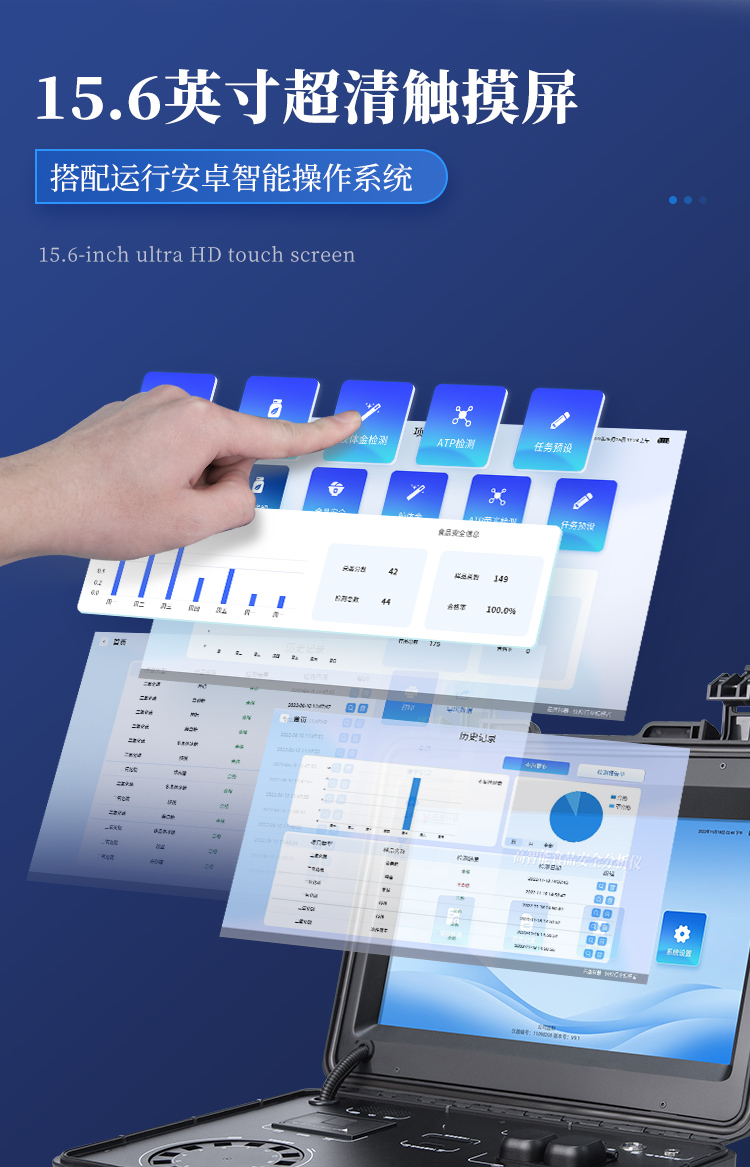| 儀器采用手提式一體化系統(tǒng)檢測(cè)技術(shù),將分光光度模塊、膠體金檢測(cè)模塊、新型農(nóng)殘檢測(cè)模塊、數(shù)字化管理模塊、無(wú)線通訊模塊高度集成于一體,支持檢測(cè)200種食品安全檢測(cè)項(xiàng)目,同時(shí)預(yù)留升級(jí)檢測(cè)方法。 | 儀器檢測(cè)模塊標(biāo)準(zhǔn)化、智能化,檢測(cè)項(xiàng)目可隨意自由組合。檢測(cè)箱體內(nèi)置多個(gè)標(biāo)準(zhǔn)檢測(cè)單元,檢測(cè)模塊可以調(diào)整配置。 | 顯示屏幕:儀器采用10.1英寸液晶觸摸屏顯,搭配運(yùn)行安卓智能操作系統(tǒng),主控芯片采用ARM Cortex-A7,RK3288/4核處理器,主頻1.88Ghz,運(yùn)轉(zhuǎn)速度更快速,性能更強(qiáng)。 | 檢測(cè)通道:≥12通道;采用精密旋轉(zhuǎn)比色池設(shè)計(jì),使用光源芯片一致,可以解決各通道間由于光源芯片不同帶來(lái)的檢測(cè)結(jié)果誤差問(wèn)題,檢測(cè)結(jié)果更加精準(zhǔn),1-12通道間誤差0.1%,***:**202022821055.2。 | 儀器光源:高精度進(jìn)口四波長(zhǎng)冷光源,每個(gè)通道均配置 410、520、590、630nm 波長(zhǎng)光源,標(biāo)配**的光路切換裝置,專(zhuān)利光路切換功能可實(shí)現(xiàn)*多64波長(zhǎng),并且所有檢測(cè)項(xiàng)目可實(shí)現(xiàn)所有通道同時(shí)檢測(cè) | 設(shè)備具備開(kāi)機(jī)自動(dòng)校準(zhǔn)及一鍵校準(zhǔn)功能,確保檢測(cè)數(shù)據(jù)結(jié)果準(zhǔn)確。 | 通訊接口:配備無(wú)線通信模塊、4G(APN)通訊模塊、藍(lán)牙傳輸,同時(shí)具有雙USB接口以及RJ45網(wǎng)線接口,可以多方式實(shí)現(xiàn)數(shù)據(jù)保存及數(shù)據(jù)傳輸。 | 存儲(chǔ)方式:支持U盤(pán)存儲(chǔ),標(biāo)準(zhǔn)USB接口,免驅(qū)動(dòng)安裝。檢測(cè)結(jié)果存儲(chǔ)容量20萬(wàn)條以上,可生成Excel表格進(jìn)行拷貝,并具有登錄保護(hù)功能。 | 智能化操作系統(tǒng): 操作系統(tǒng):可在同一檢測(cè)界面自動(dòng)對(duì)應(yīng)相關(guān)檢測(cè)通道,一次性選擇1-12個(gè)樣品名稱(chēng),無(wú)需退出界面,節(jié)省操作時(shí)間。檢測(cè)通道可以分別打開(kāi)與關(guān)閉并對(duì)檢測(cè)通道屬性和樣品信息進(jìn)行編輯,例如送檢單位、人員,檢測(cè)人員等,打印時(shí)一并顯示。 數(shù)據(jù)集成系統(tǒng):設(shè)備首頁(yè)自動(dòng)統(tǒng)計(jì)檢測(cè)數(shù)據(jù),包含:周檢測(cè)數(shù)據(jù)、月檢測(cè)數(shù)據(jù),全部檢測(cè)總數(shù)量,均包含檢測(cè)總數(shù),合格數(shù),不合格數(shù),以及相關(guān)柱形分析圖,對(duì)各項(xiàng)檢測(cè)數(shù)據(jù)清晰掌握,無(wú)需電腦查詢(xún),更加快捷直觀。 數(shù)據(jù)庫(kù)系統(tǒng):具有多品類(lèi)多種類(lèi)樣品菜單功能,并且構(gòu)建了完善的檢索、修訂功能。食品庫(kù)涵蓋多種菜單庫(kù)100多種蔬菜名稱(chēng),可按需添加或刪除、編輯蔬菜名稱(chēng);不同的檢測(cè)通道可同時(shí)檢測(cè)不同的樣品,產(chǎn)品數(shù)據(jù)庫(kù)以及歷史檢測(cè)記錄支持一鍵檢索功能。 限量規(guī)判系統(tǒng):具有限量查詢(xún)、添加物質(zhì)合規(guī)判定系統(tǒng)。檢測(cè)出結(jié)果后,系統(tǒng)自動(dòng)調(diào)用系統(tǒng)數(shù)據(jù)庫(kù)中相關(guān)國(guó)標(biāo)進(jìn)行比對(duì)判定,客觀顯示判定結(jié)果是否合格。 項(xiàng)目預(yù)設(shè)系統(tǒng):儀器具有任務(wù)預(yù)設(shè)模塊,可在樣品送檢前提前預(yù)設(shè)樣品名稱(chēng)、檢測(cè)指標(biāo)、送檢單位、檢測(cè)單位等信息,樣品送檢時(shí)一鍵調(diào)取保存信息,并可多次調(diào)取,大大提高檢測(cè)效率。 數(shù)據(jù)監(jiān)管系統(tǒng):同步對(duì)接監(jiān)管平臺(tái),數(shù)據(jù)可局域網(wǎng)和互聯(lián)網(wǎng)數(shù)據(jù)上傳,檢測(cè)結(jié)果可選擇直接傳至食品安全監(jiān)管平臺(tái)。進(jìn)行區(qū)域食品安全監(jiān)管及大數(shù)據(jù)分析處理與數(shù)據(jù)統(tǒng)計(jì),檢測(cè)區(qū)域食品安全長(zhǎng)短期動(dòng)態(tài),達(dá)到食品安全問(wèn)題預(yù)估、預(yù)警。 自定義打印系統(tǒng):內(nèi)置熱敏打印機(jī);系統(tǒng)打印格式多樣化,產(chǎn)品合格證(國(guó)家農(nóng)業(yè)部標(biāo)準(zhǔn)要求),二維碼,抽樣信息、檢測(cè)信息,受檢信息、復(fù)核信息、抽樣日期、檢測(cè)日期等信息結(jié)果,可按實(shí)際需求自行設(shè)置開(kāi)啟或關(guān)閉,并完成打印。 | 供電模式:儀器主機(jī)采用一體化防水、抗壓、防撞擊、防腐蝕機(jī)體設(shè)計(jì),可直接使用交流電源;內(nèi)置6ah大容量充電鋰電池,可連續(xù)使用8小時(shí)以上,滿足脫電情況下檢測(cè)需求。 | 膠體金檢測(cè)模塊: 采用雙通道CMOS成像處理技術(shù)及膠體金免疫層析技術(shù),可同時(shí)讀取雙膠體金卡數(shù)據(jù),自動(dòng)采集、處理分析,將檢測(cè)結(jié)果顯示,并可根據(jù)參考限值自動(dòng)判斷檢測(cè)結(jié)果,可檢測(cè)常見(jiàn)的獸藥殘留、生物毒素、抗生素、違禁添加物等。 探測(cè)技術(shù):CMOS成像探測(cè); 檢測(cè)通道:3通道,可同時(shí)讀取3個(gè)膠體金卡數(shù)據(jù); 檢測(cè)方式:消線法和比色法; 顯示模式:陰性或陽(yáng)性; 曲線形式:軌道式自動(dòng)傳輸掃描方式,可實(shí)時(shí)顯示金標(biāo)卡